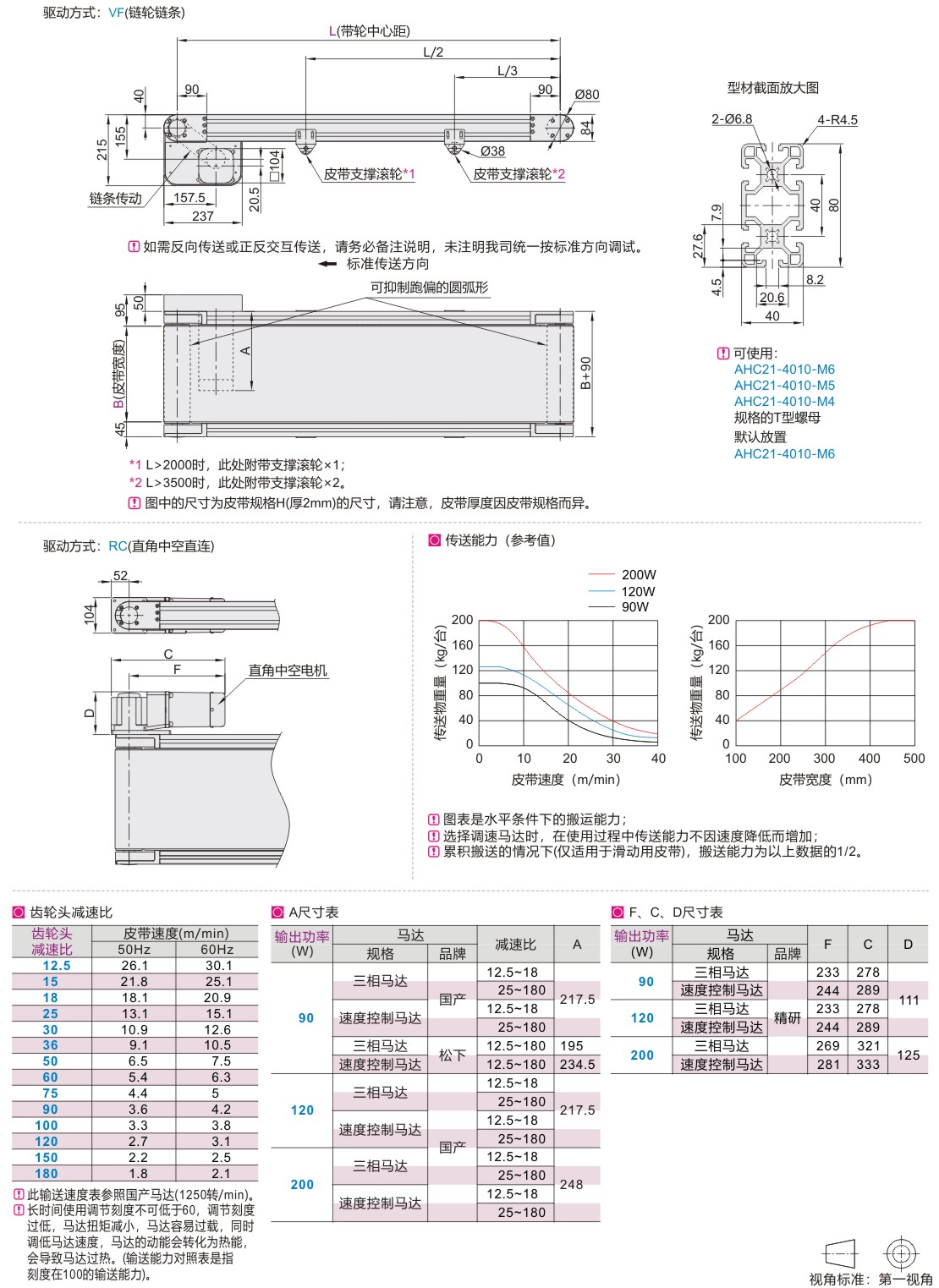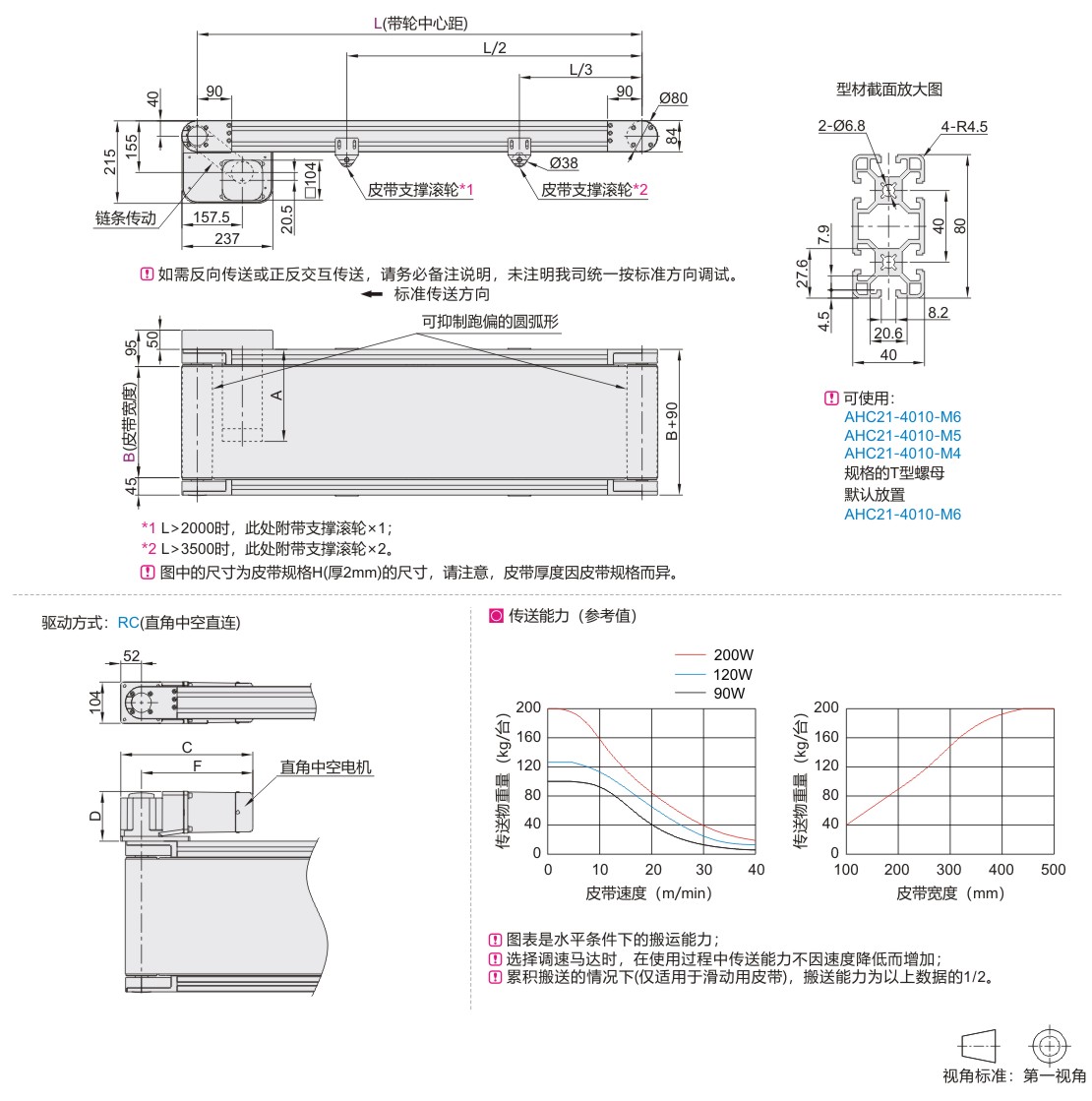 平皮带输送机 重载型 头部驱动双槽型材 带轮直径80mm