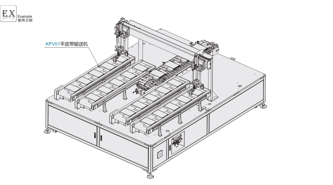 KPV01平皮带输送机用在设备内部中重型零件上料传送。