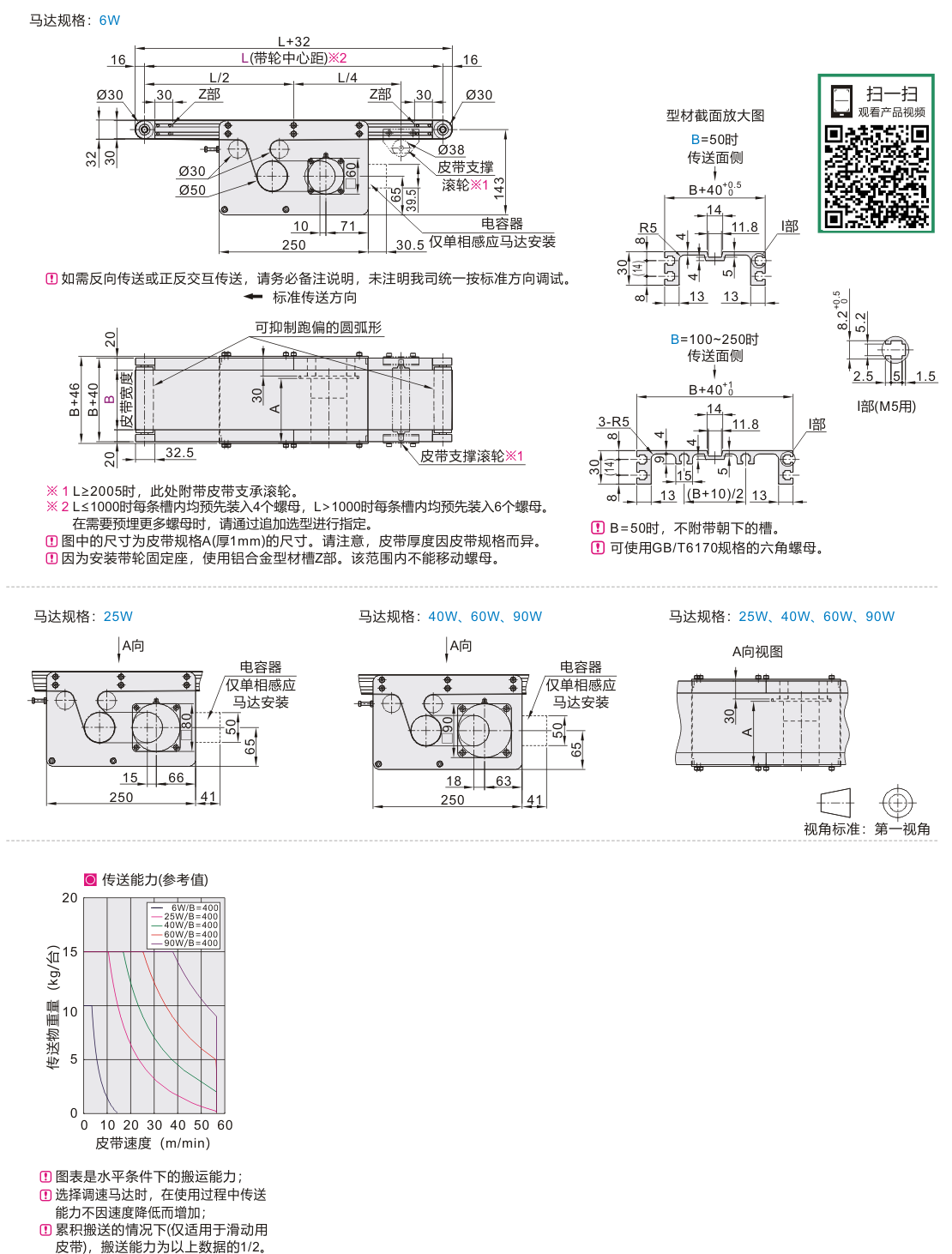 经济型 平皮带输送机 中间驱动双槽型材 带轮直径30mm