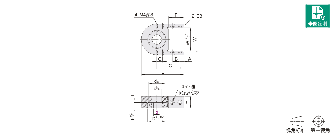 | d | 使用轴承型号 | D | da | dh | h |
