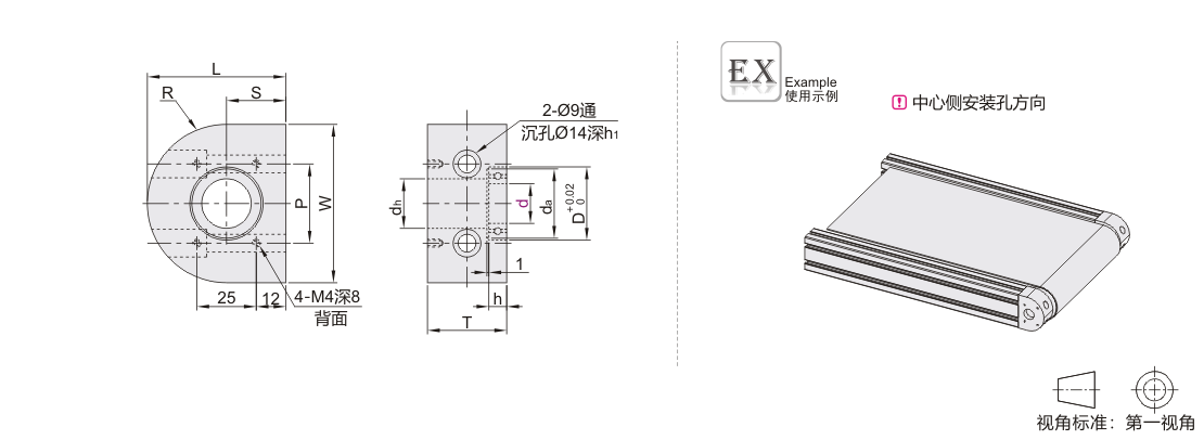 输送机滚轮安装座 轴承型 圆头型 中心侧安装孔 材质:S45C/A6061