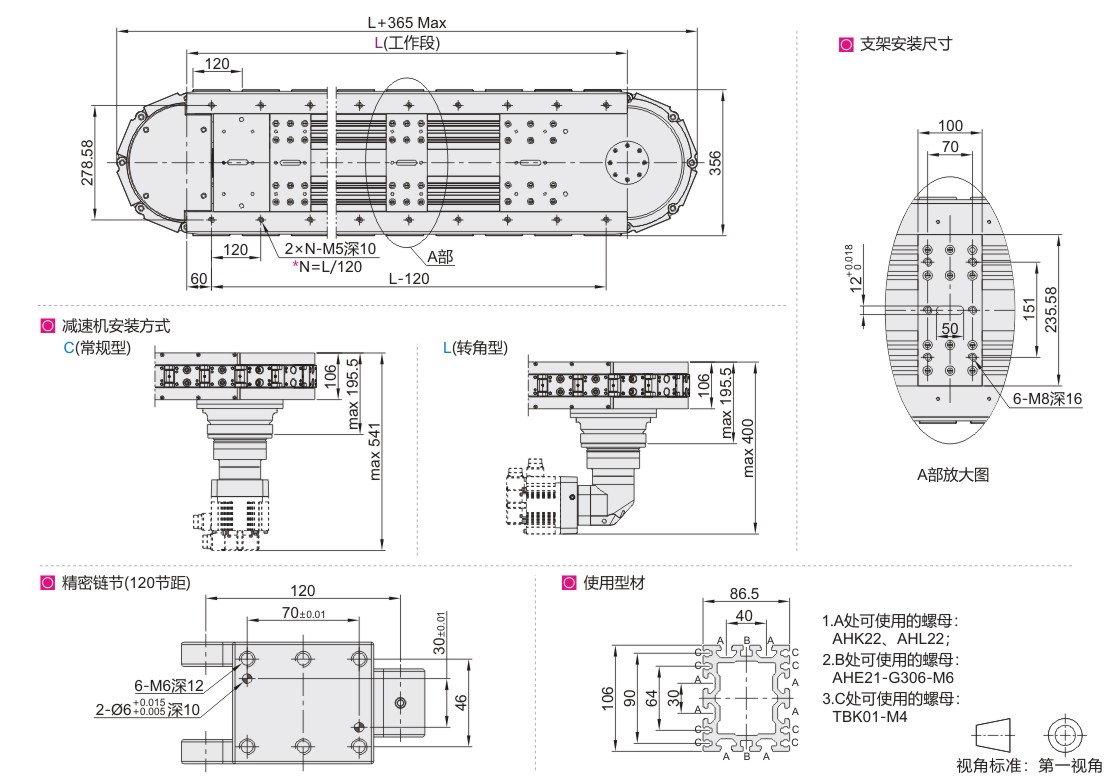 精密链节分度系统 节距120mm 主体:铝型材 链节:铝合金