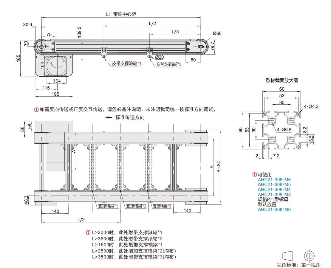同步带输送机 头部驱动双槽型材 轮直径70mm 重载型