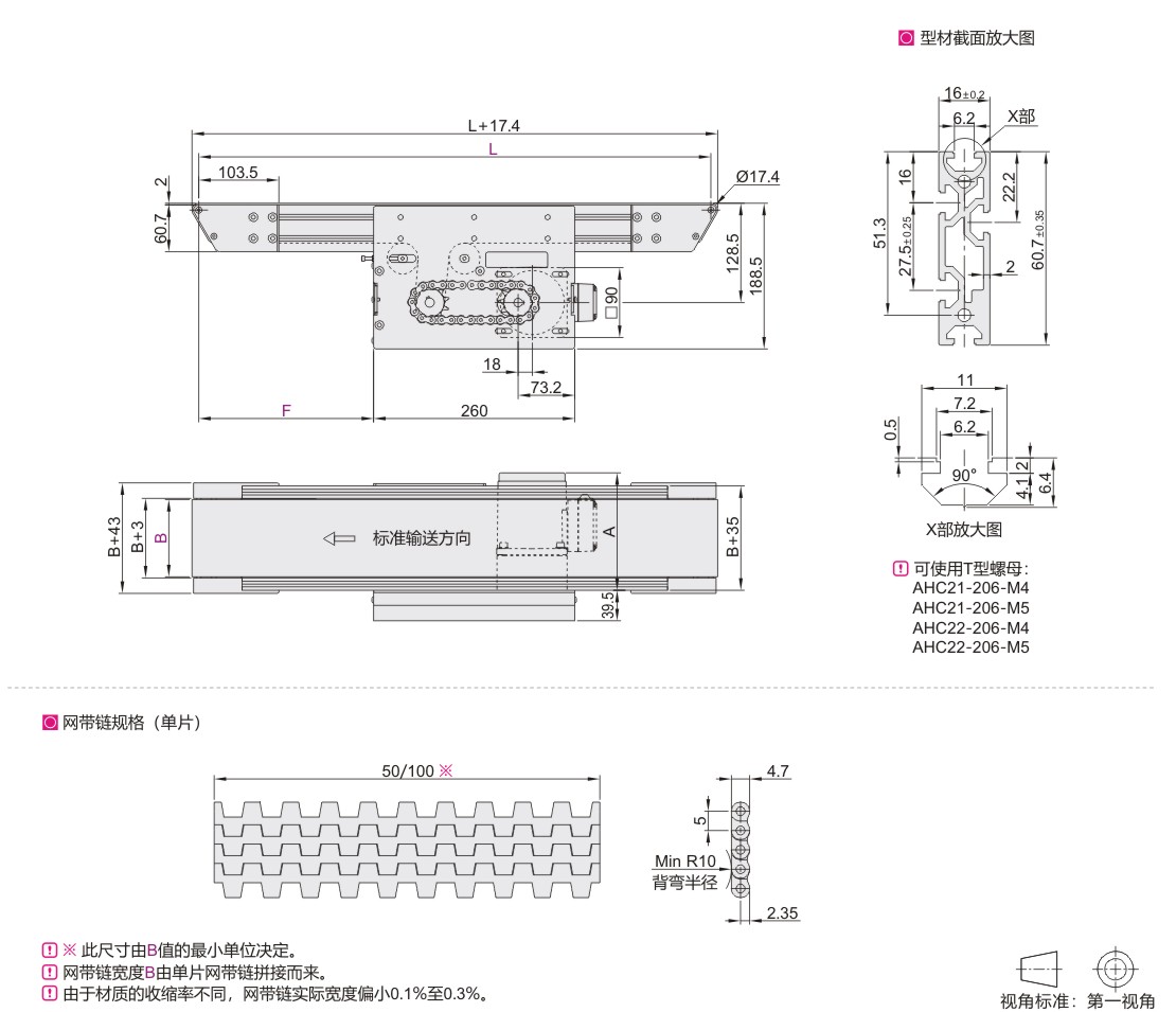 ● 5mm小节距,过渡轮径小,兼容小物品输送;