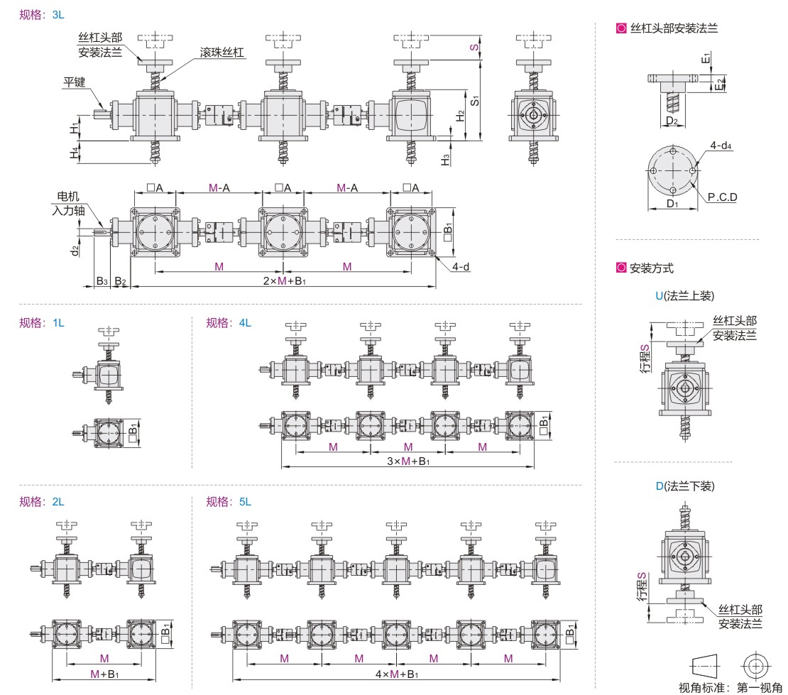 | 2L 3L 4L 5L | 16 | 5 | 150~1500 | 2 | 260~1000 | U(法兰上装) D(法兰下装) |