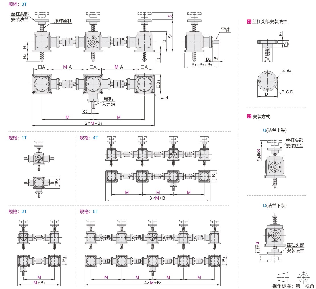 | 2T 3T 4T 5T | 16 | 5 | 150~1500 | 2 | 260~1000 | U(法兰上装) D(法兰下装) |