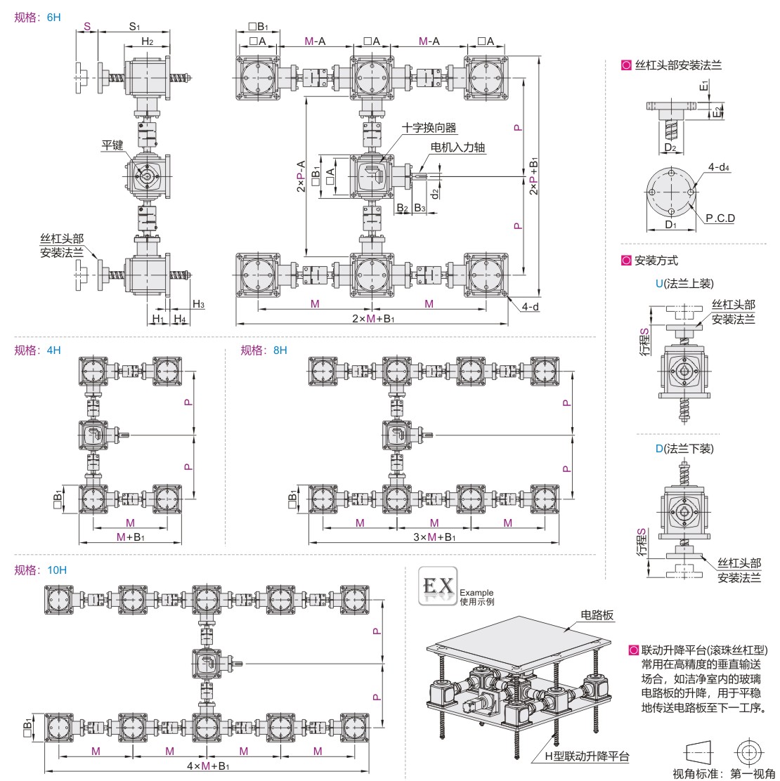 联动升降平台 滚珠丝杠型 H型 电动驱动 材质:S45C