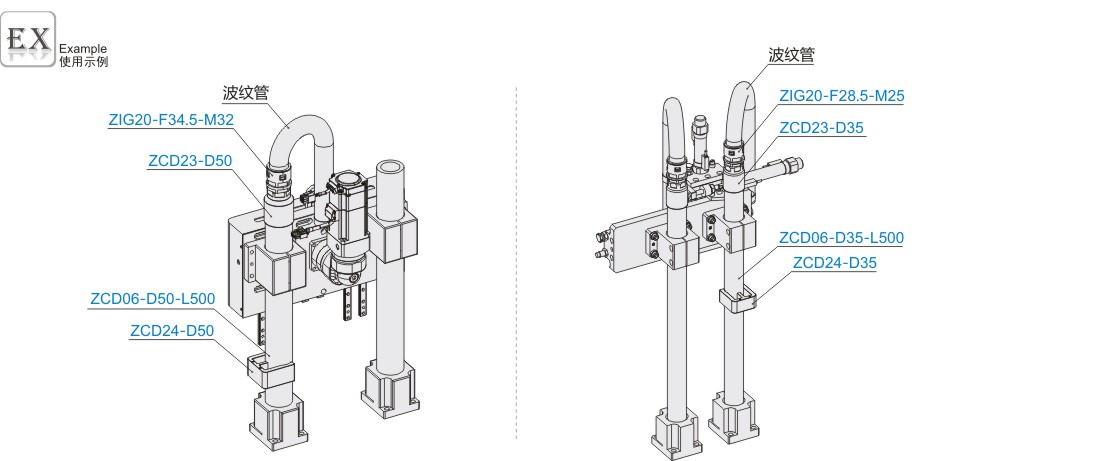 ● 配合立柱使用,线路和管路穿过立柱后通过此产品进入波纹管,能