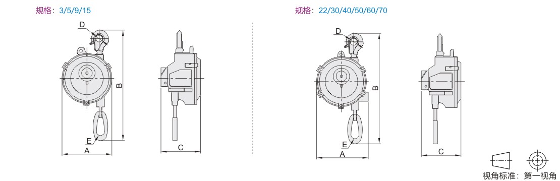 弹簧平衡器 普通型 黄色烤漆 合金钢外壳 吊钩安装