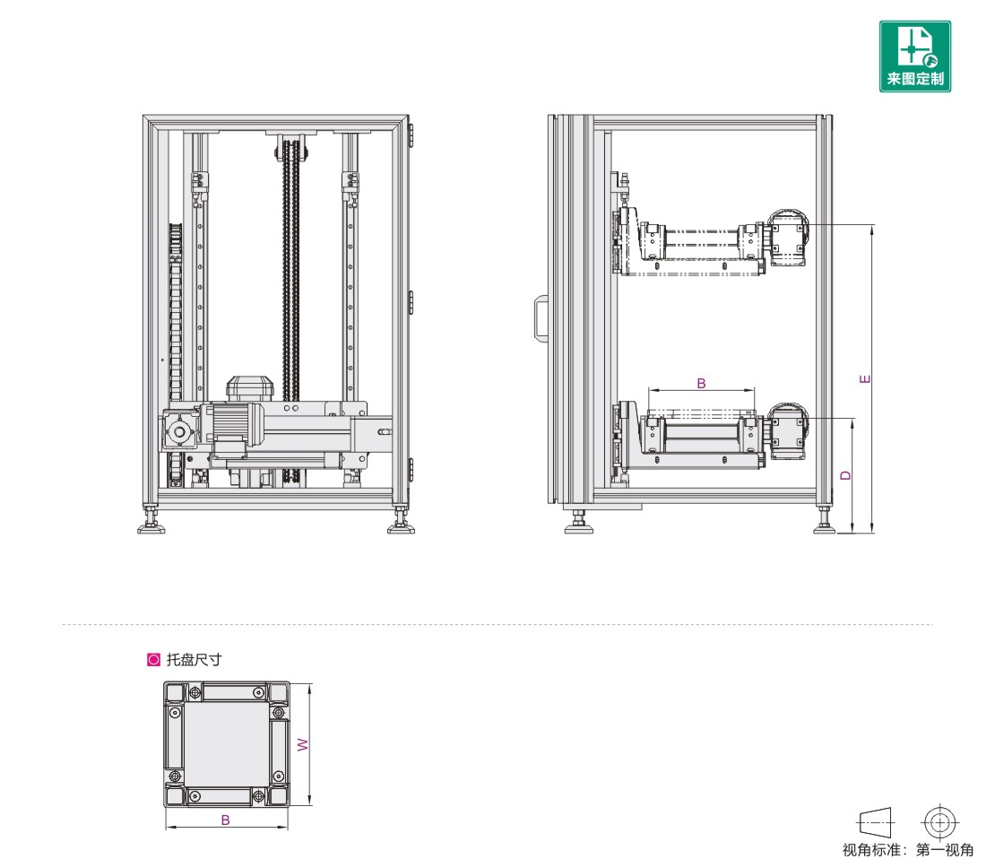 电机链条式升降机 负载能力200kg T5齿形带/链条/辊筒输送