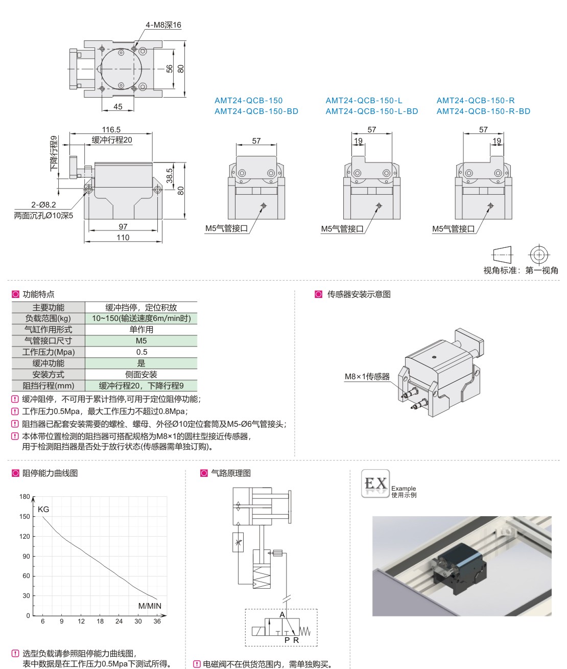 | AMT24-QCB-150 | 缓冲阻挡器 | 单作用 | 标准型 | 居中 | 150kg | 铝材 | 黑色氧化 |