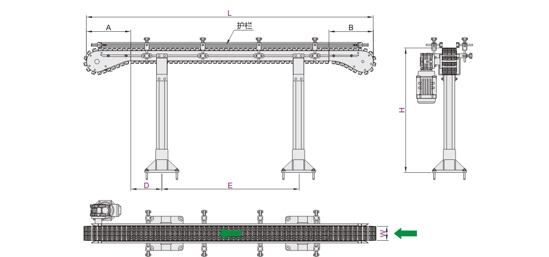 ①宽平链为输送链的基础款,用于物料的直接输送,或者通过工件托盘的间接输送物料。