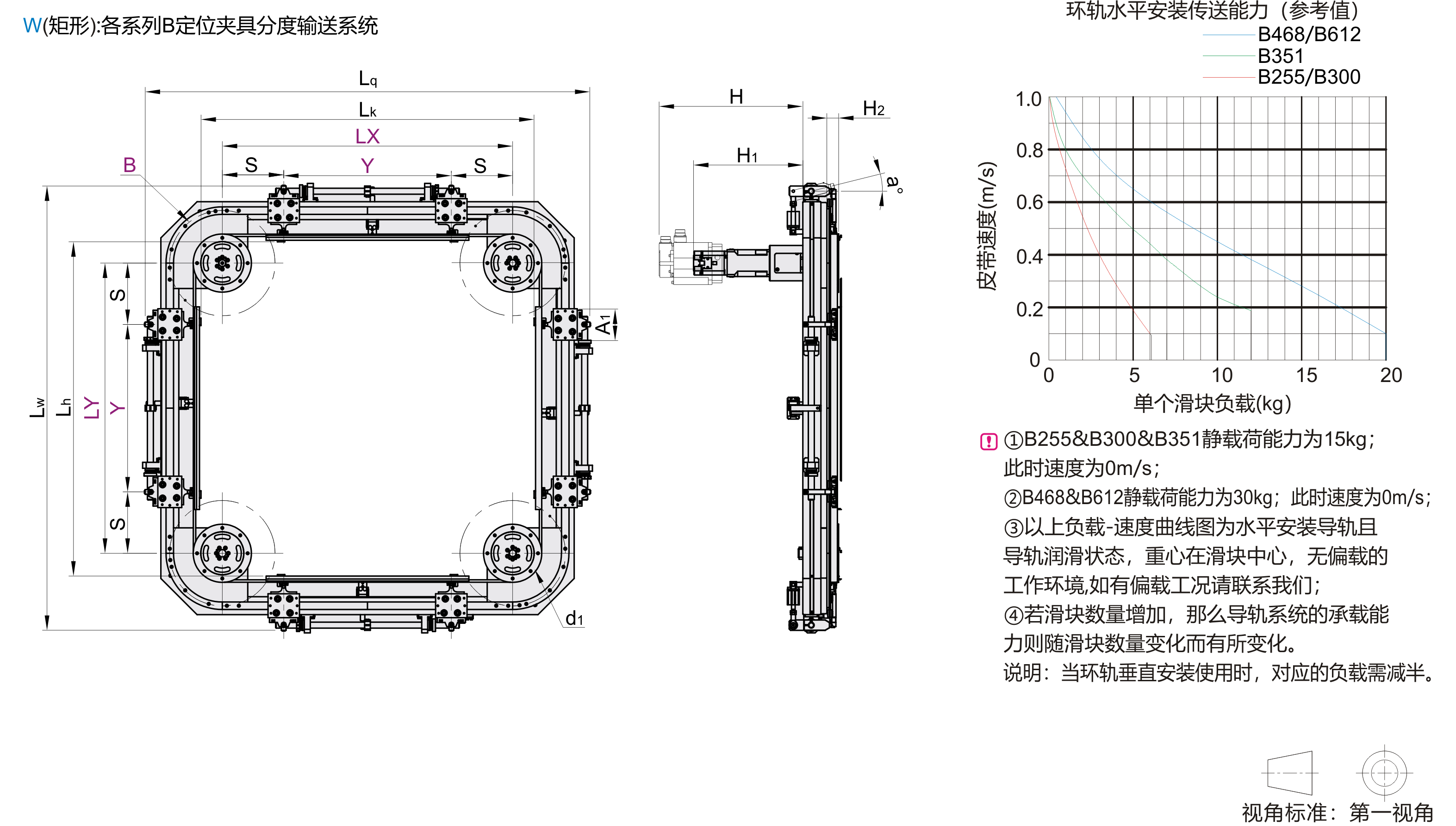 B468适用于一般载荷的中高速运行,其单个滑块最大负载能力20kg,B468适用于对宽度要求较为宽裕以及负载较大的场合,一般推荐使用负