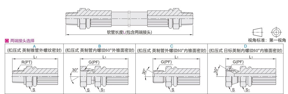 接头的选取一般要考虑接头的头数,接头角度,和软管的安装方式,螺纹类型(内外),螺纹标准(国标、英标、美标),螺纹大小,锥面角度,材质,如存在转换时更需注意两端的螺纹标准。