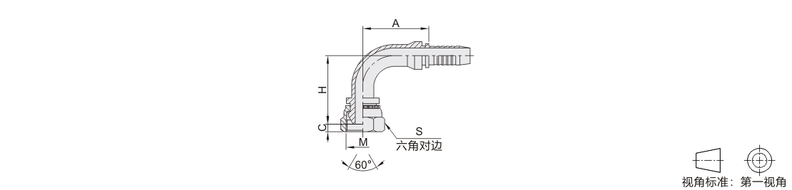 软管接头 90°弯接头 碳钢/SUS304材质 扣压式 公制螺纹 60°外锥面密封