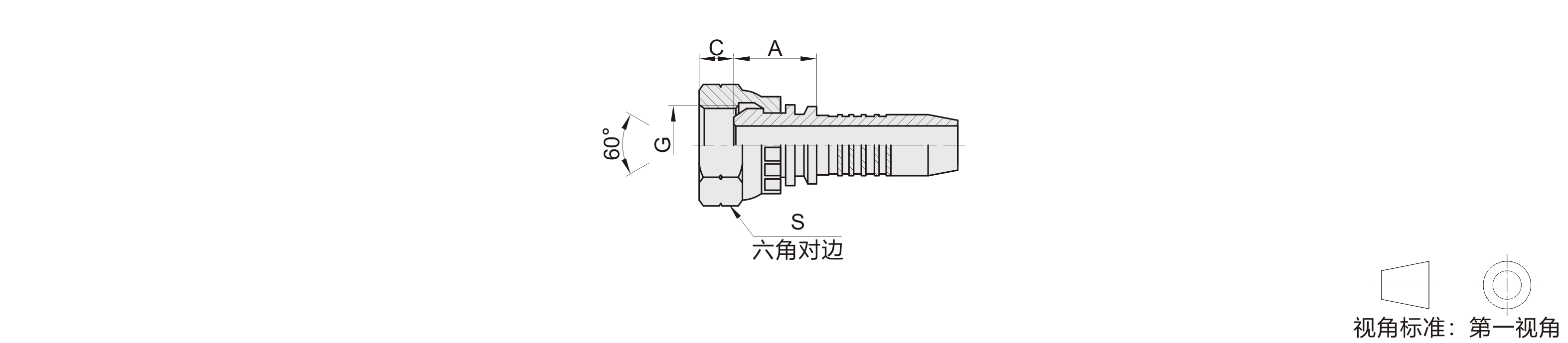 软管接头 直接头 碳钢/SUS304材质 扣压式 英制螺纹 60°外锥面密封