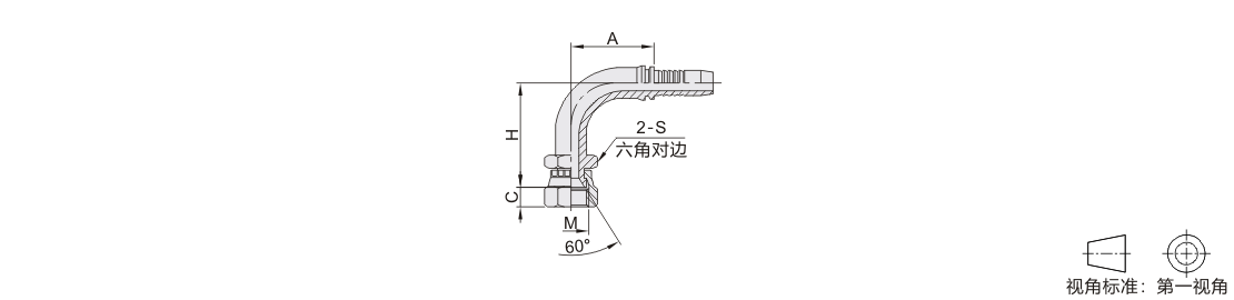 软管接头 90°弯接头 碳钢/SUS304材质 扣压式 日本公制螺纹 60°内锥面密封