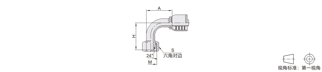软管接头 90°弯接头 碳钢/SUS304材质 一体式 公制螺纹 24°外锥面带O型圈密封