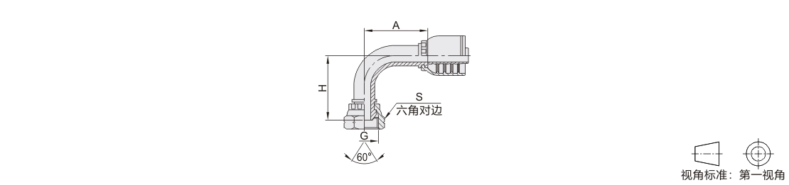 软管接头 90°弯接头 碳钢/SUS304材质 一体式 英制管螺纹 60°外锥面密封