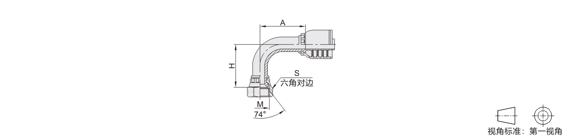 软管接头 90°弯接头 碳钢/SUS304材质 一体式 美制JIC螺纹 74°内锥面密封