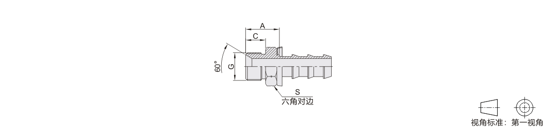 软管接头 直接头 碳钢/SUS304材质 插入式 英制管螺纹 60°内锥面密封