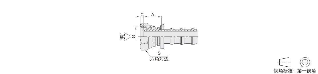 软管接头 直接头 碳钢/SUS304材质 编织软管 插入式 英制管螺纹 60°外锥面密封