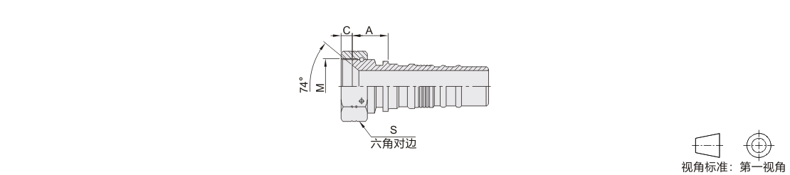 软管接头 直接头 碳钢/SUS304材质 编织软管 内锁式 美制JIC螺纹 74°内锥面密封