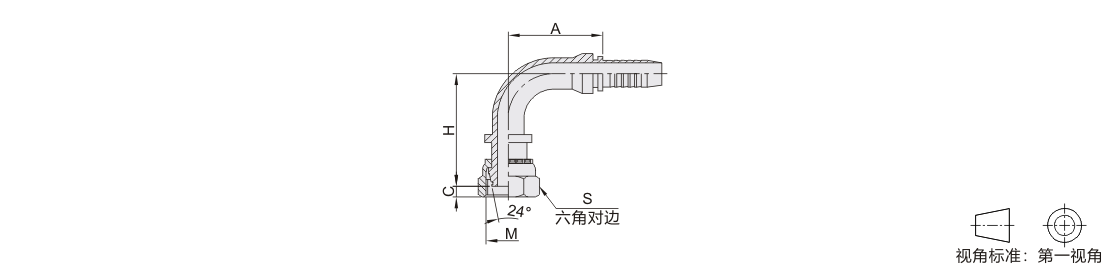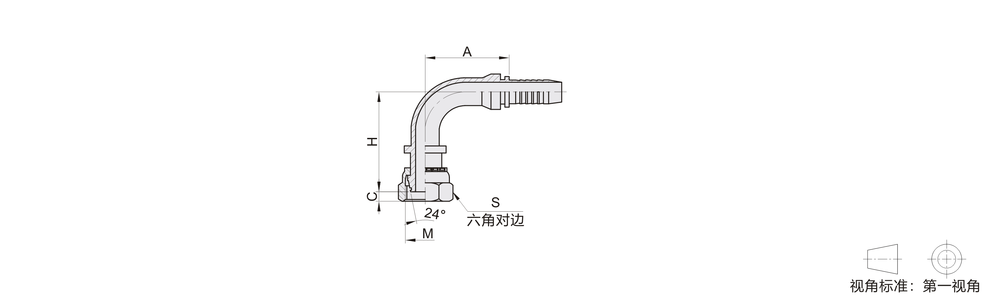 软管接头 90°弯接头 碳钢/SUS304材质 轻系列 扣压式 公制螺纹 24°外锥面带O型圈密封
