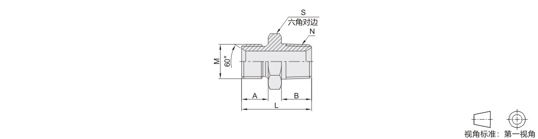 过渡接头 直接头 碳钢/SUS304材质 一端英制BSP螺纹一端英制BSPT螺纹 外螺纹 60°锥面密封