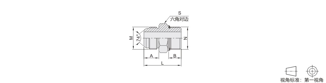 过渡接头 直接头 碳钢/SUS304材质 一端美制JIC螺纹一端英制BSP螺纹 外螺纹 74°锥面扩口密封