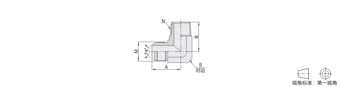 过渡接头 90°弯接头 碳钢/SUS304材质 一端美制JIC螺纹一端美制NPT螺纹 外螺纹 74°锥面扩口密封