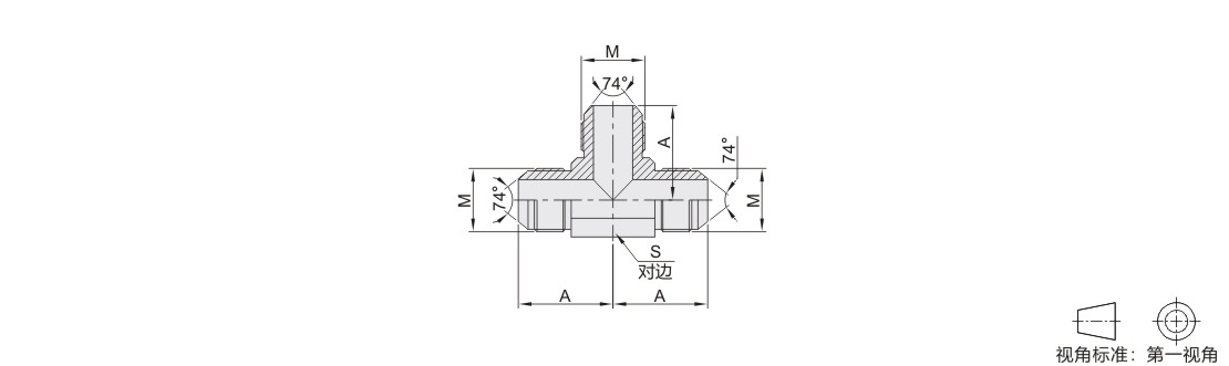 过渡接头 T型三通接头 碳钢/SUS304材质 美制JIC螺纹 外螺纹 74°锥面扩口密封