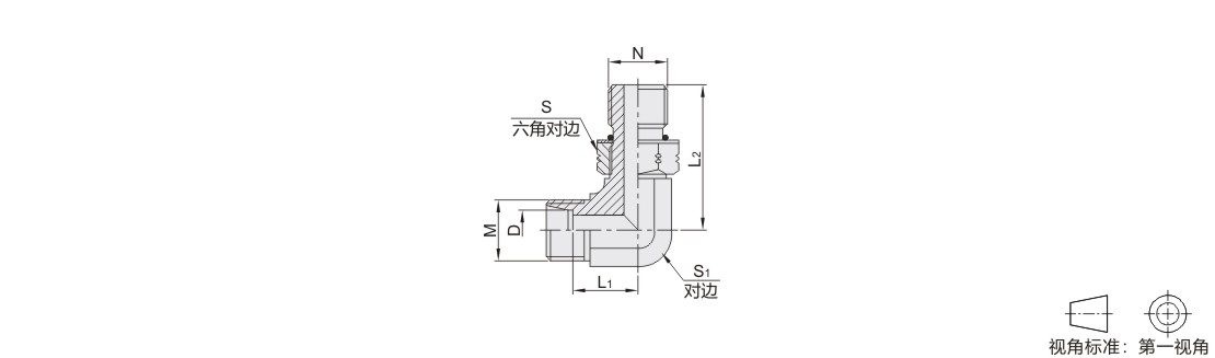 过渡接头 90°弯接头 碳钢/SUS304材质 一端公制螺纹一端美制UNF螺纹 外螺纹 O型圈密封
