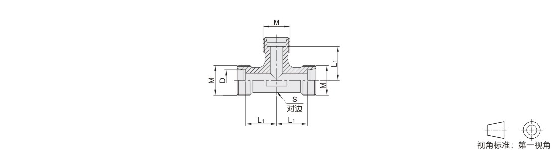 过渡接头 T型三通接头 碳钢/SUS304材质 公制螺纹 外螺纹 24°锥面密封