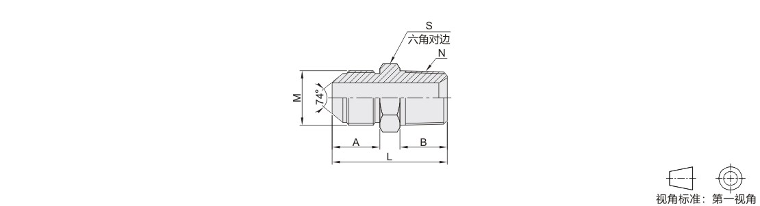 过渡接头 直接头 一端公制螺纹一端美制NPT螺纹 外螺纹 74°锥面扩口密封