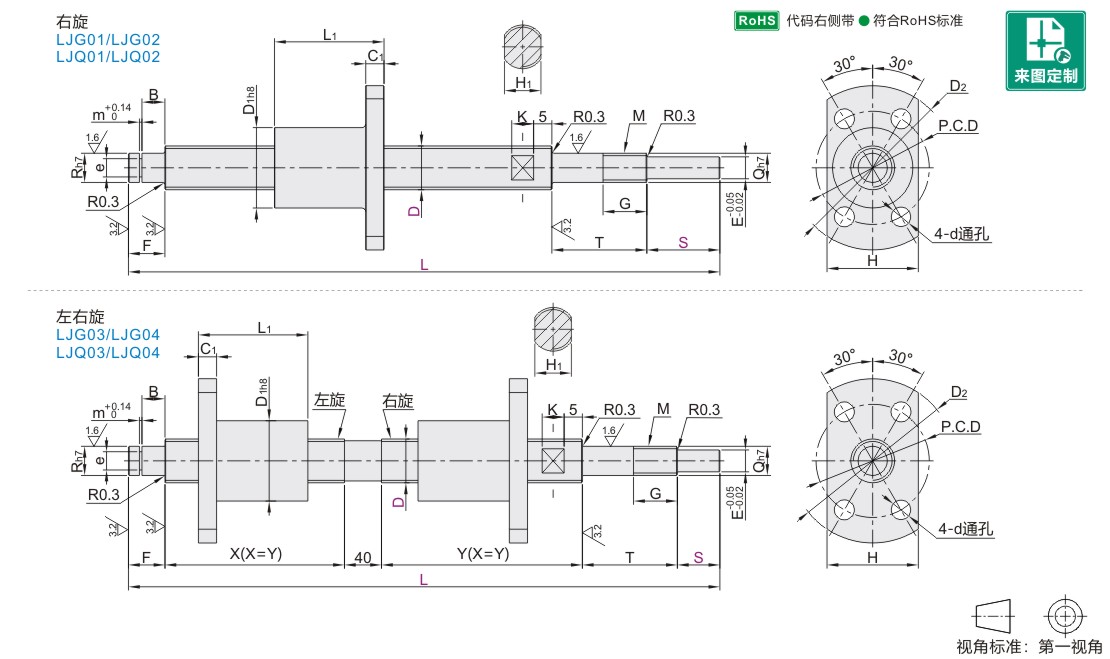 | LJG01● | LJG03● | 固定侧+支持侧 | 法兰型 螺帽 |