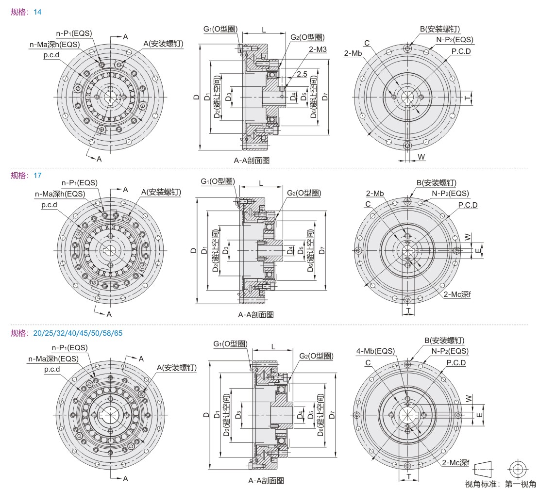 | 规格 | Mc深f | E | T | WJS9 | Dh7 | D1H7 | D2 | D3 | D4H7 | D5 | D6 | D7h6 | G1 | G2 | |||