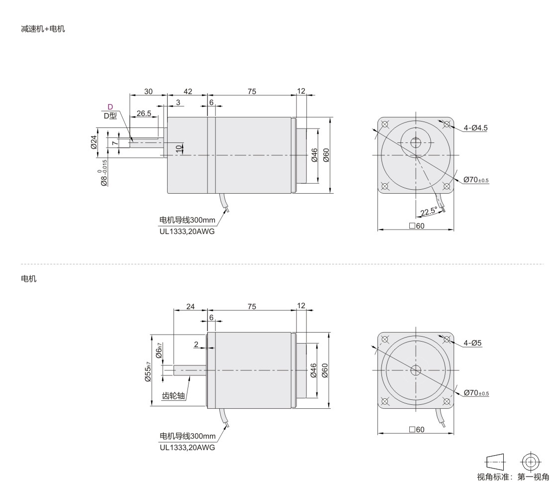 减速比25、30、36、50的电机反方向回转,其余减速比电机同一个方向回转。