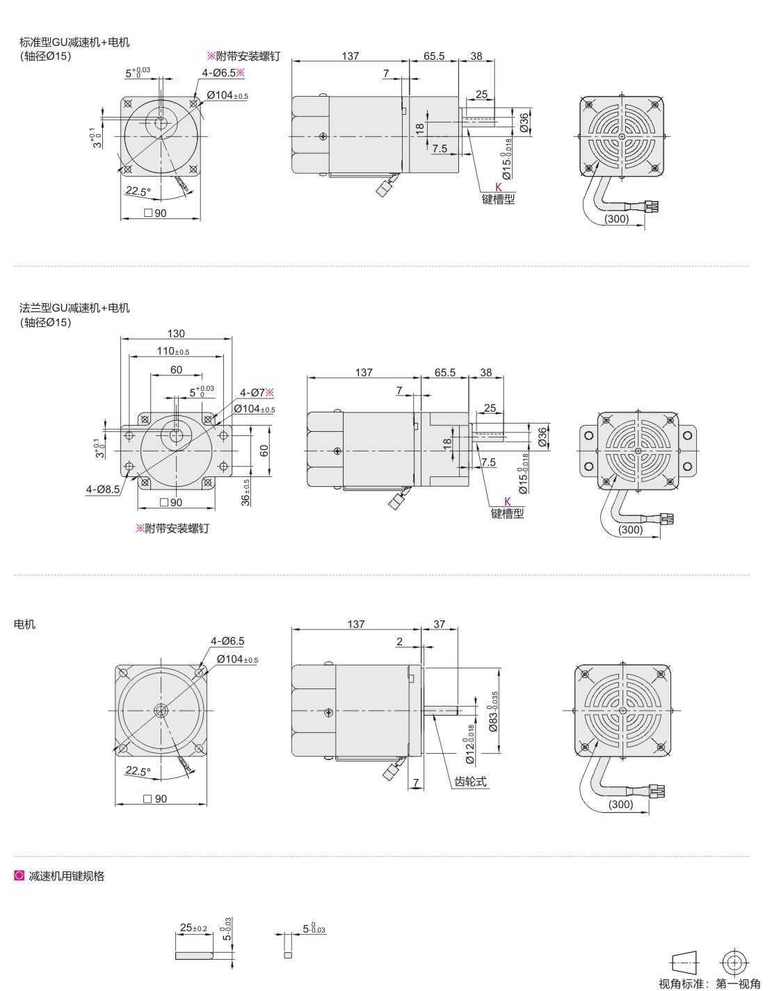 怡合达自营 经济型调速电机 减速机 电机法兰尺寸90 功率60W GU组合型