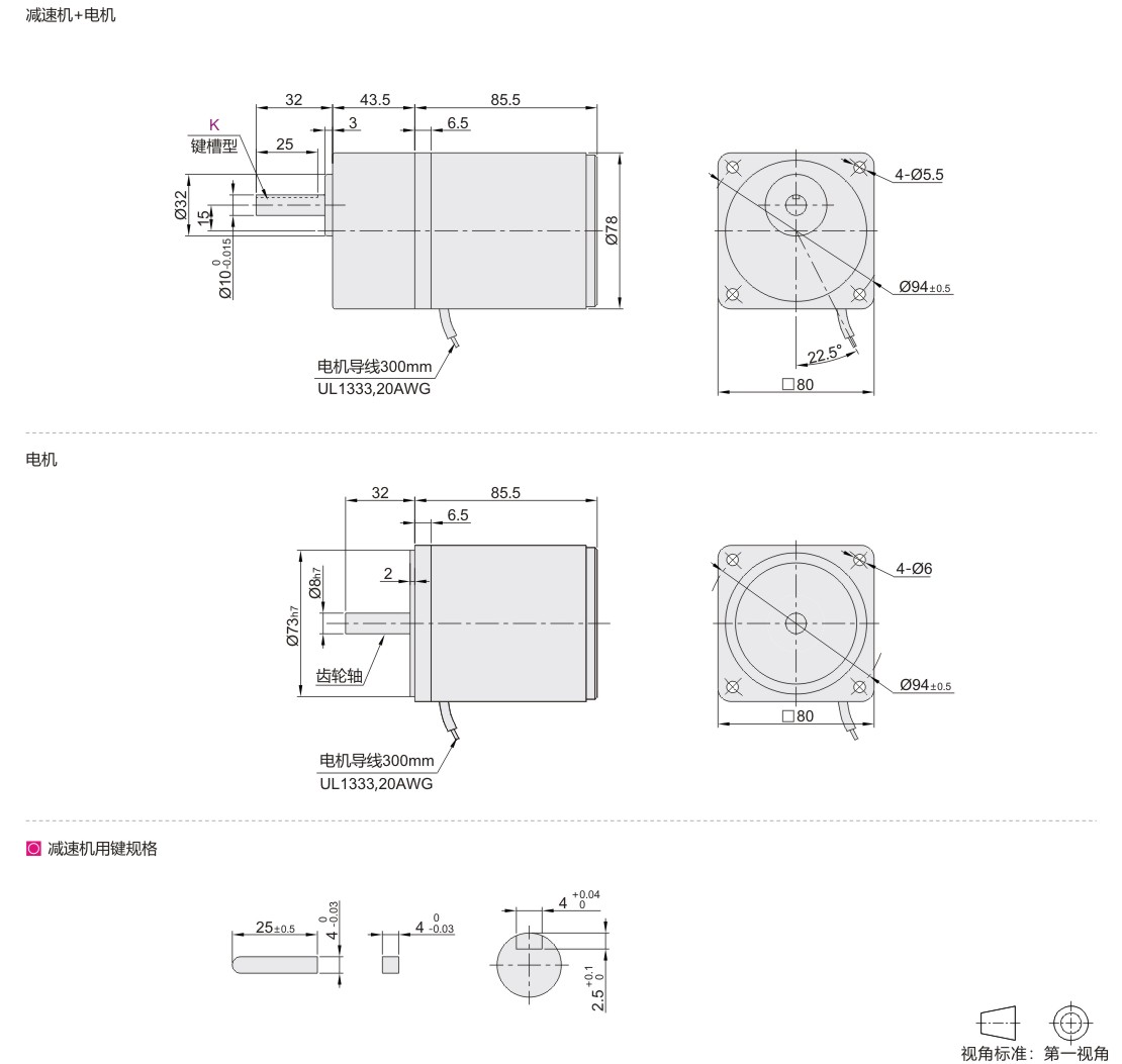 减速比25、30、36、50的电机反方向回转,其余减速比电机同一个方向回转。