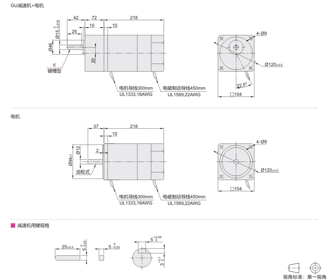 怡合达自营 刹车定速电机 减速机 电机法兰尺寸104 功率140W GU组合型