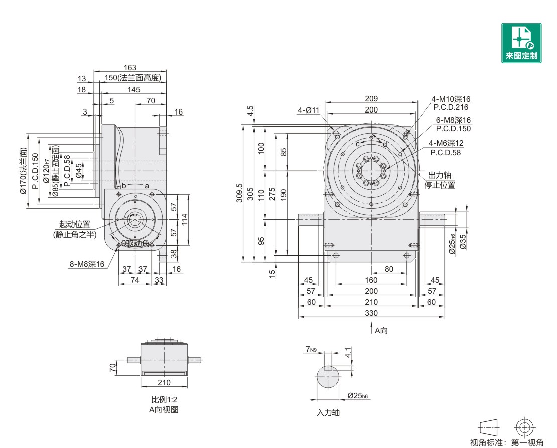 可提供分割器带电机组合件,目录以外定位等份、驱动角度可定制,如果需要请线下询价。
