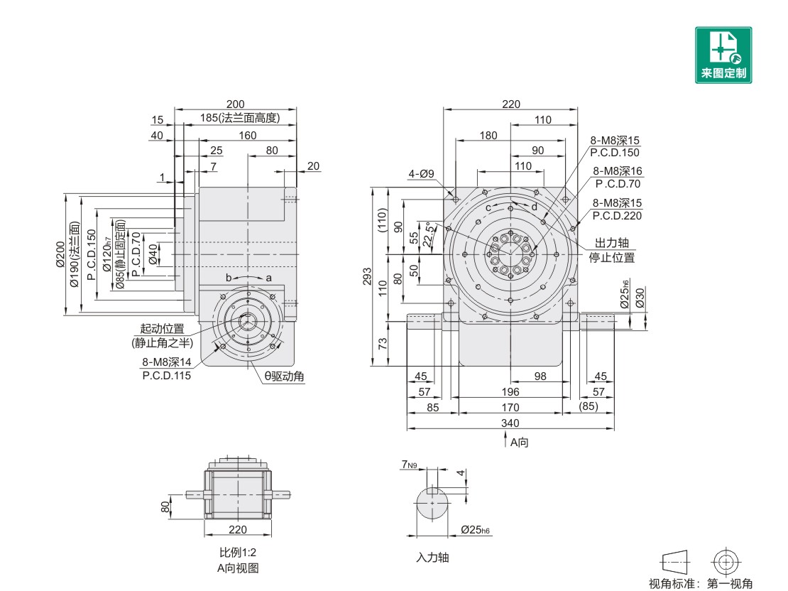 力,在输出端有一凸起固定盘面及大孔径空心轴,可搭配设置动态、静态自动化接口设备,可将
