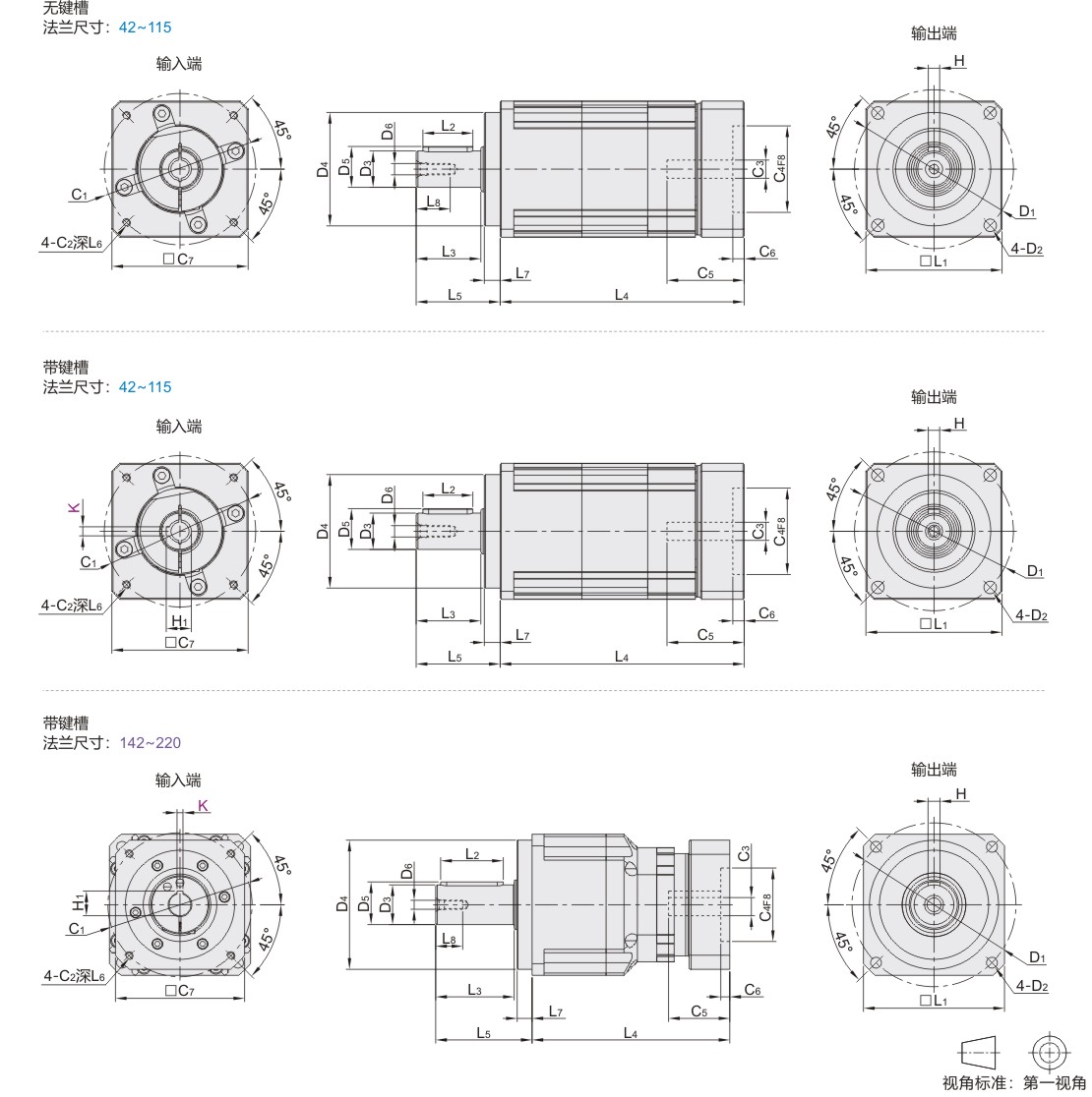 | 规格 | 单位 | 段数 | 减速比 | 法兰尺寸 | ||||||