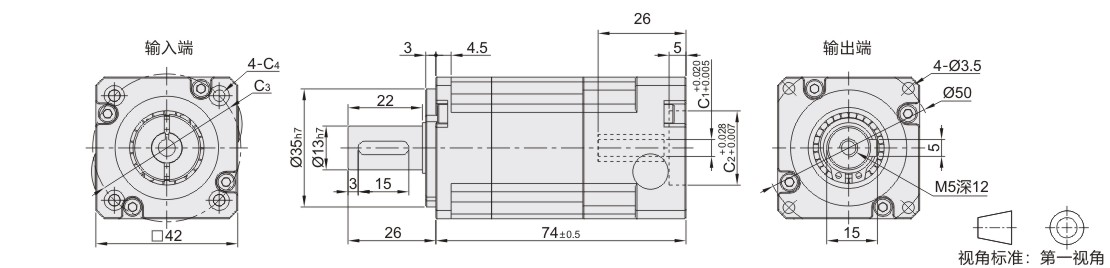 标准型 通用行星减速机 方法兰 法兰尺寸:42 斜齿•双段