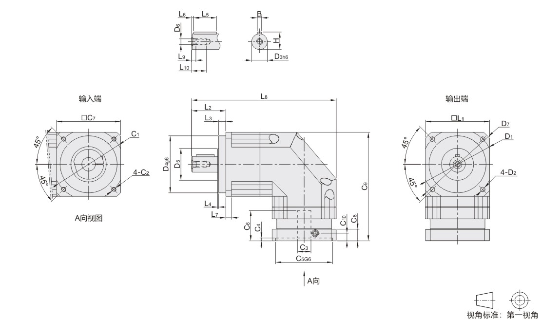 精密转角行星减速机 螺旋伞齿 转角型 单段 方法兰安装 适配伺服电机