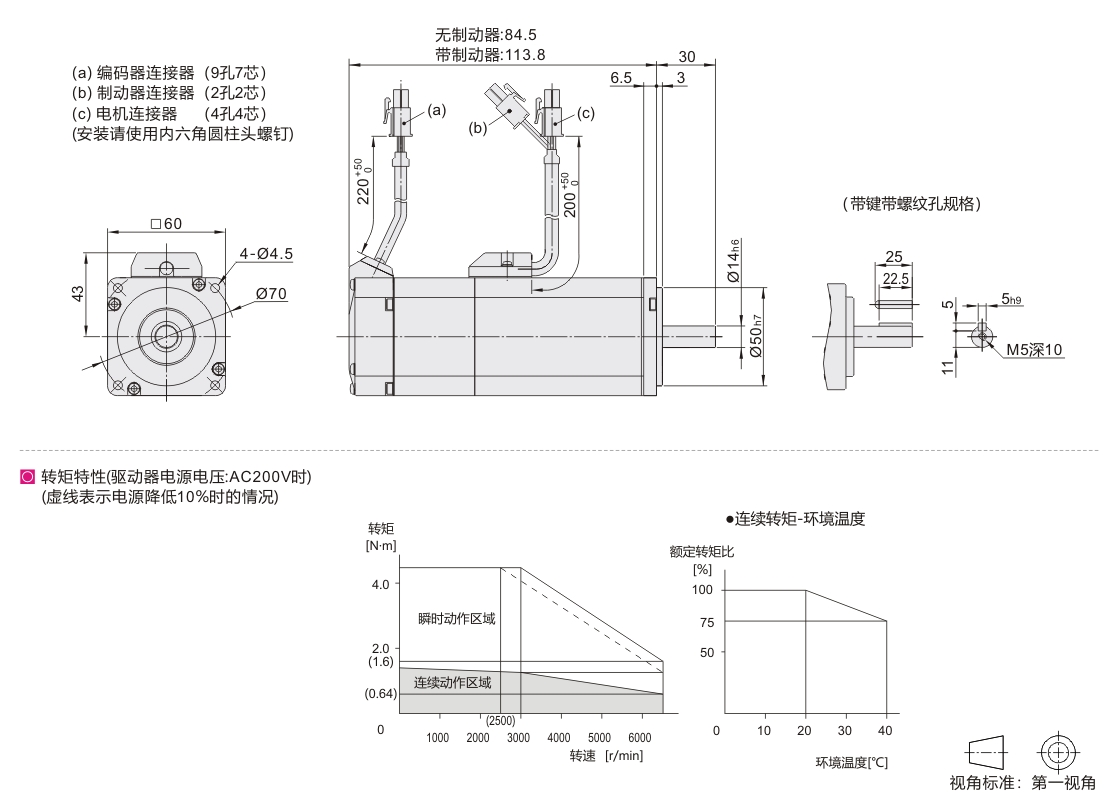 400W AC200V 1.27 4.46 IP65 轴:带键带螺纹孔