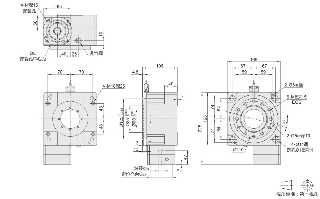 | 代码 | 外形尺寸 | 轴径d | 定位凸台C | 安装孔中心距E | |||