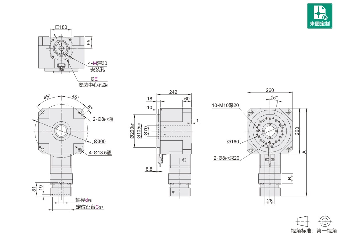 侧轴型中空旋转平台 经济型 外形尺寸260
