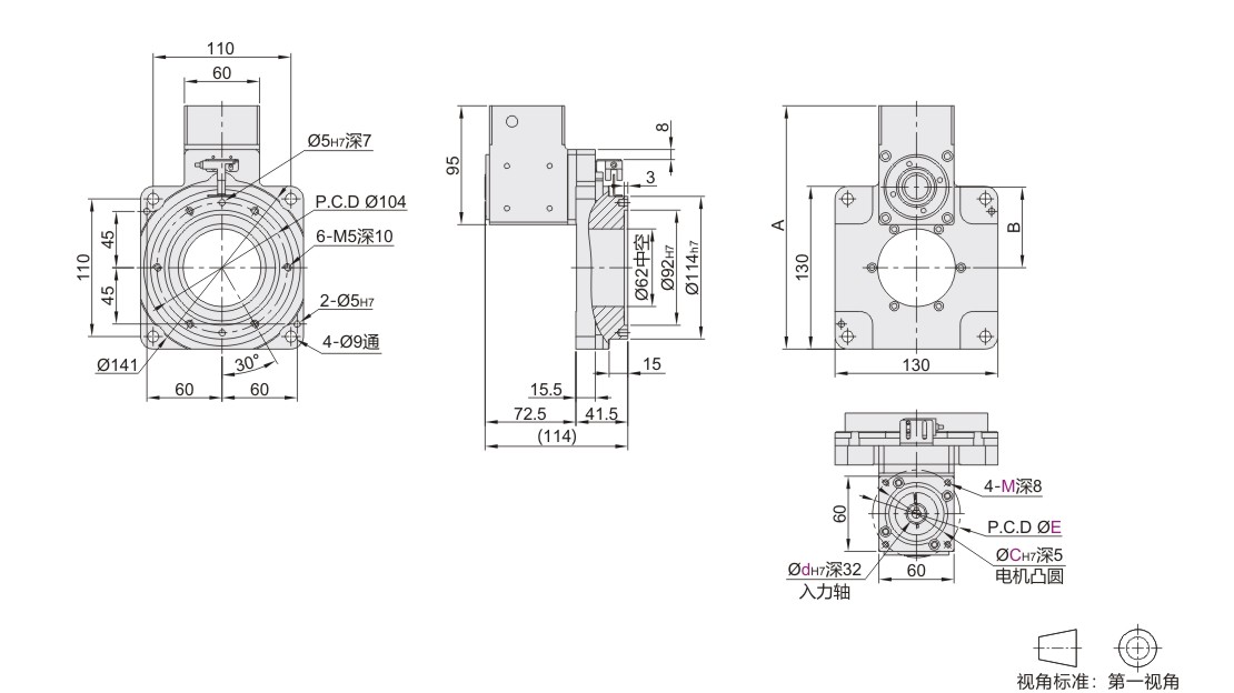 直角一体型中空旋转平台 外形尺寸130